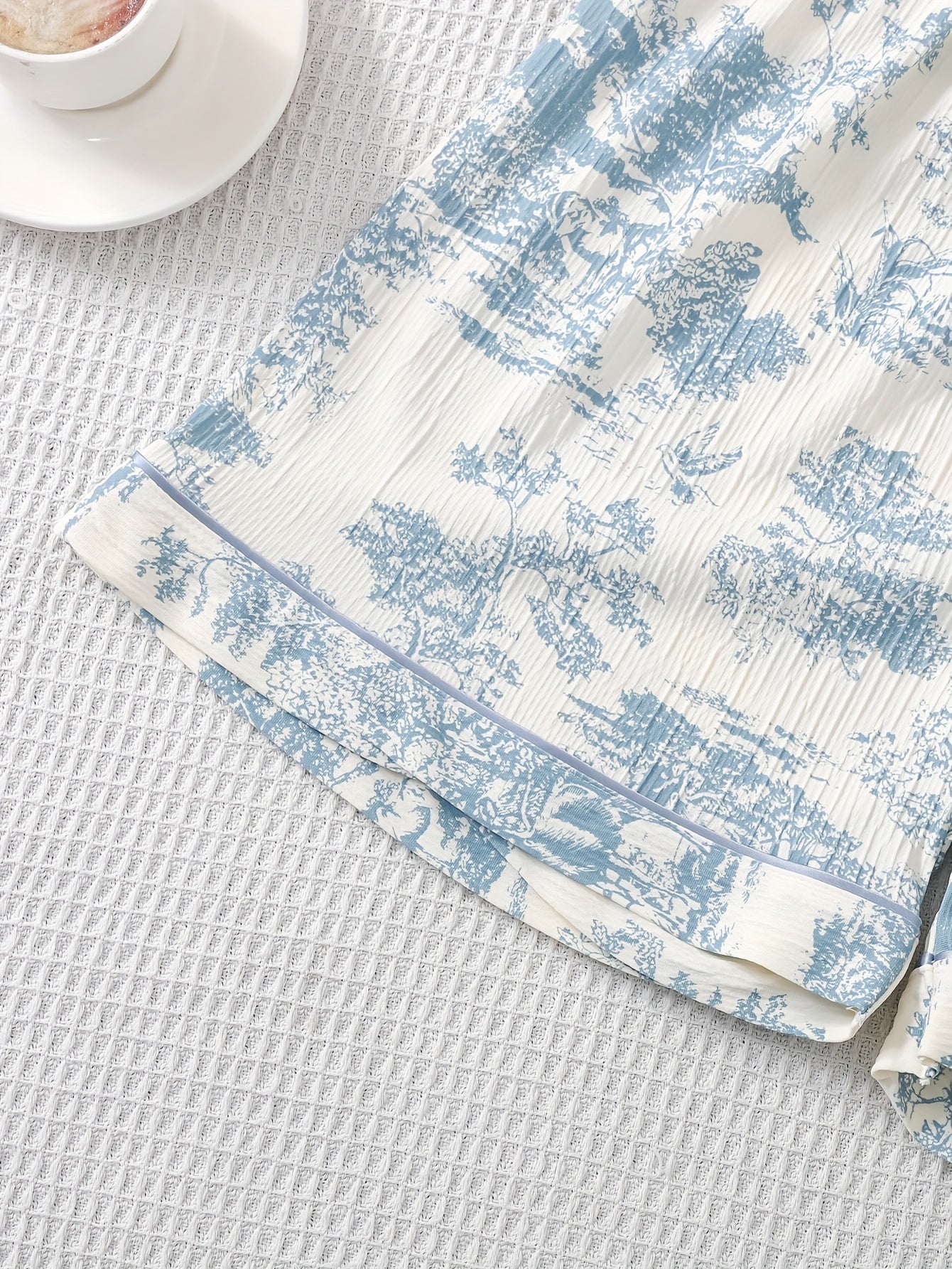 🌸 Design: Elegant blue floral print on a cream base for a classy yet relaxed look.